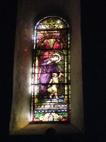 The stained glass windows in the chapel at Mt. Bugarach. The angel with the child is called a "Tobit" window. The Tobit page envelope contains a copy of the Bugarach contract of 1307.